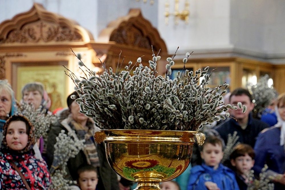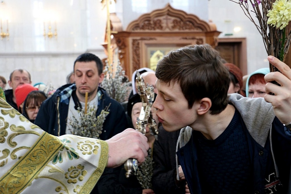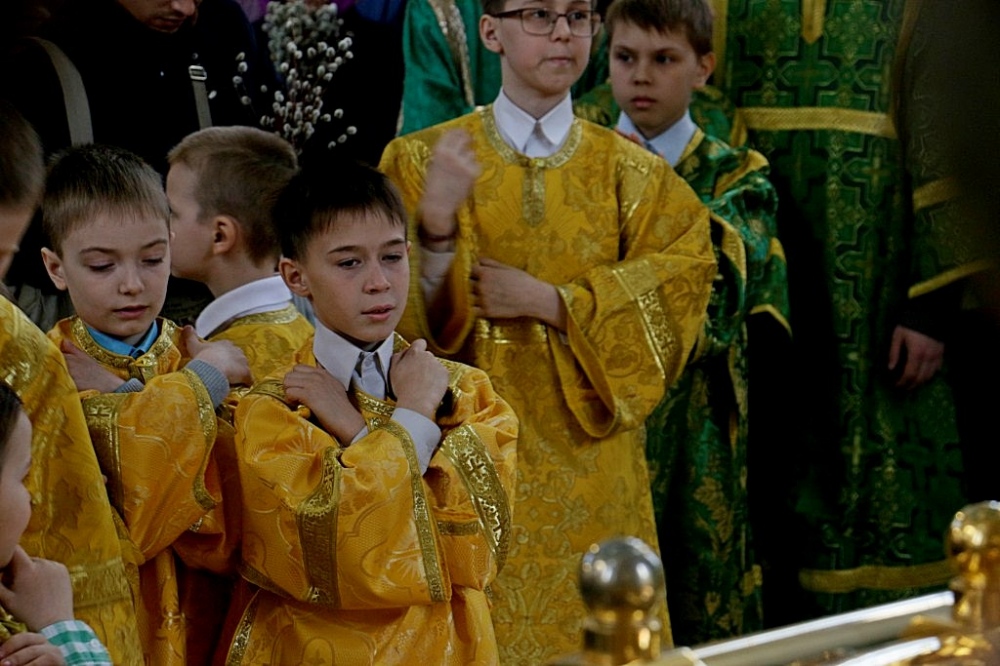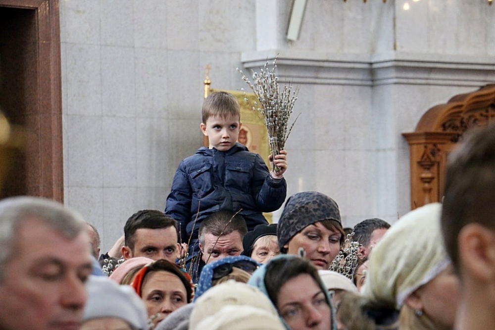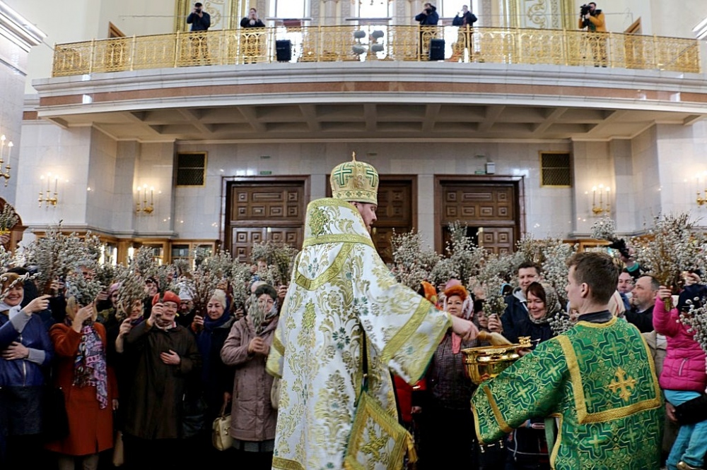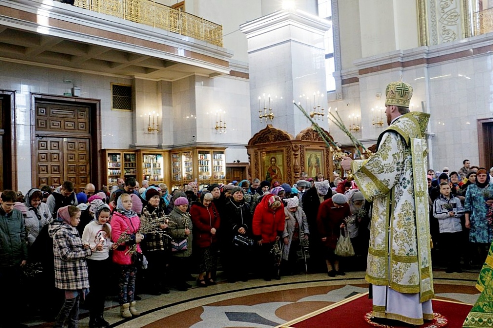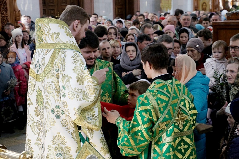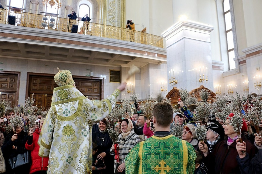 Божественная литургия в праздник Входа Господня в Иерусалим в Спасо-Преображенском кафедральном соборе 09 апреля 2017 г.