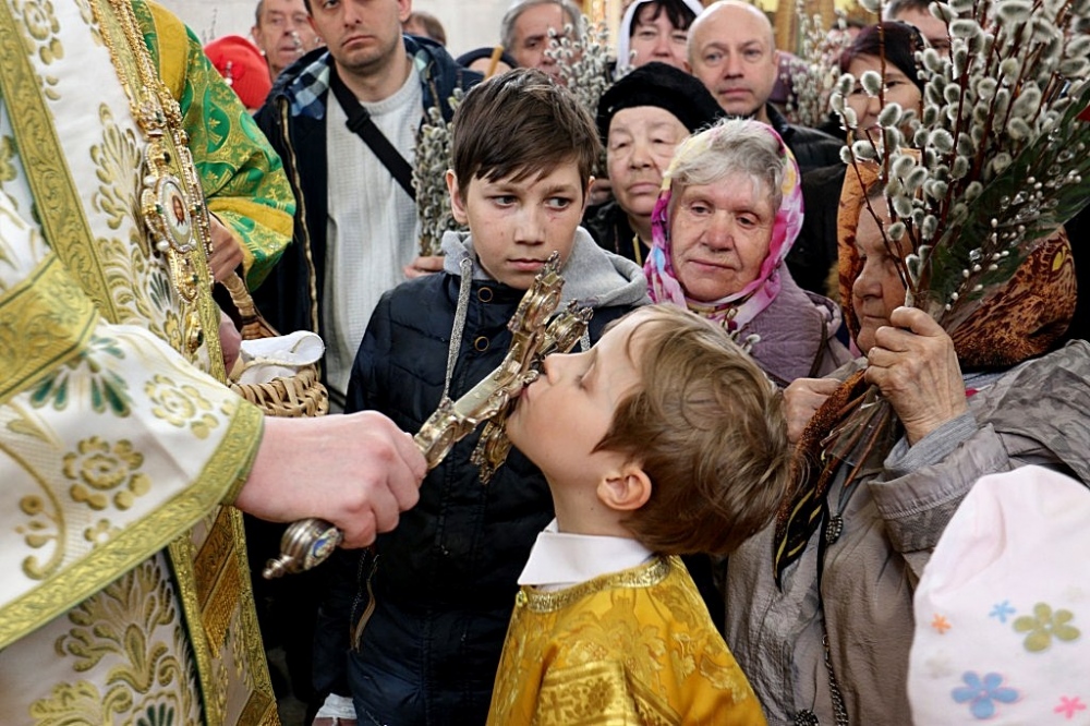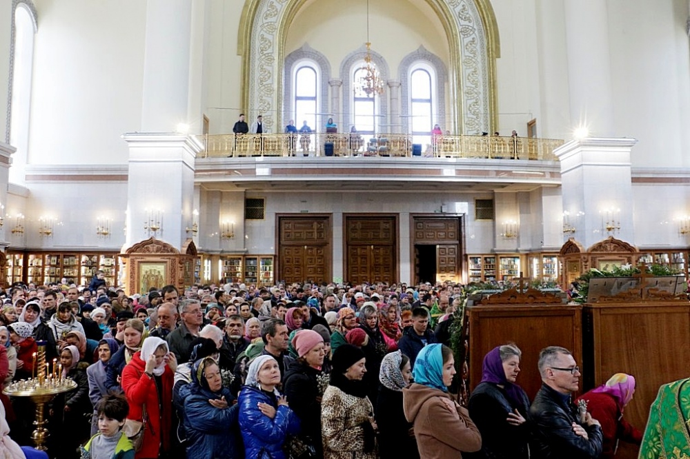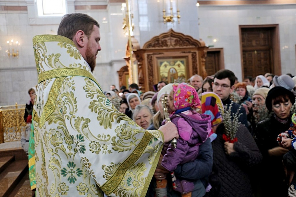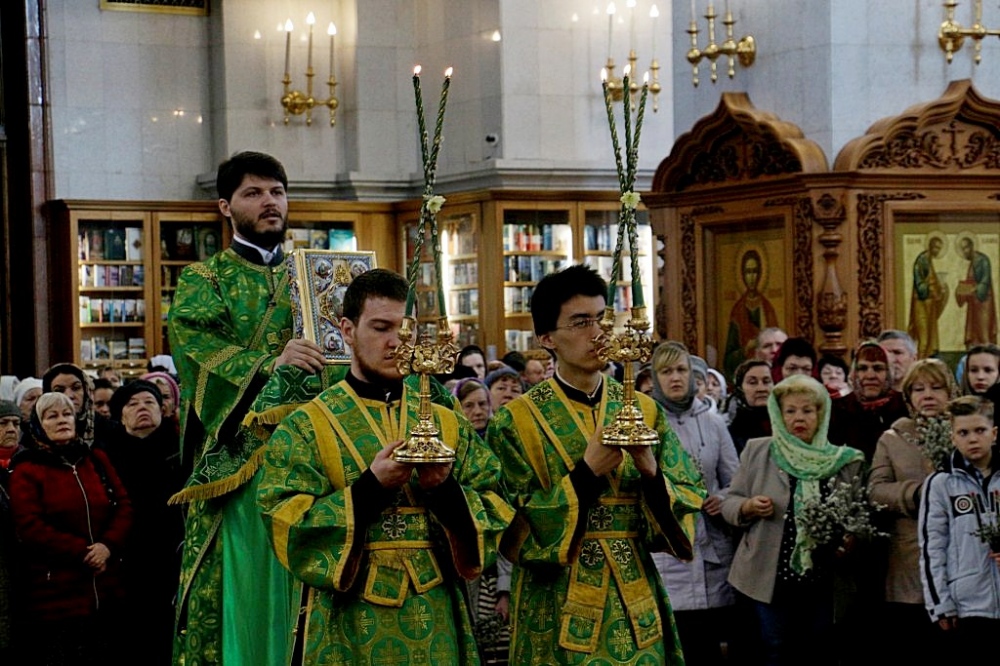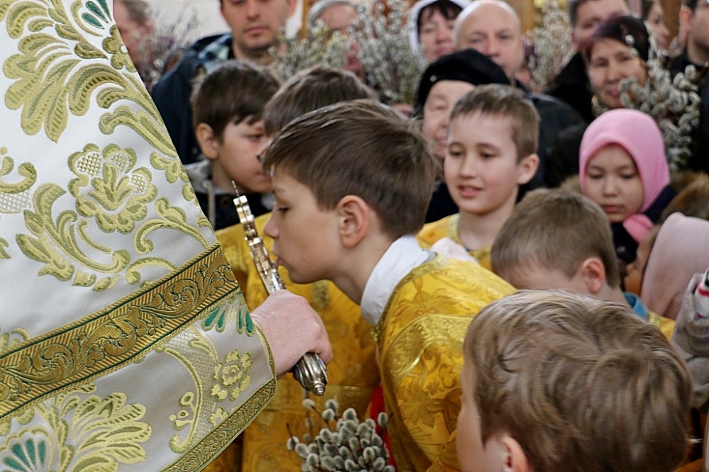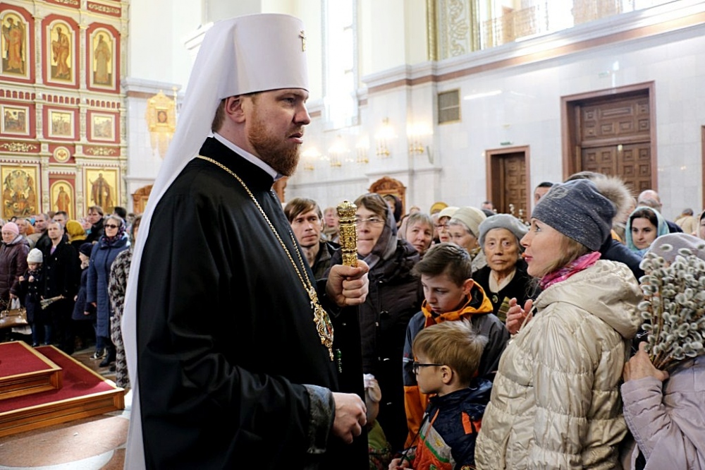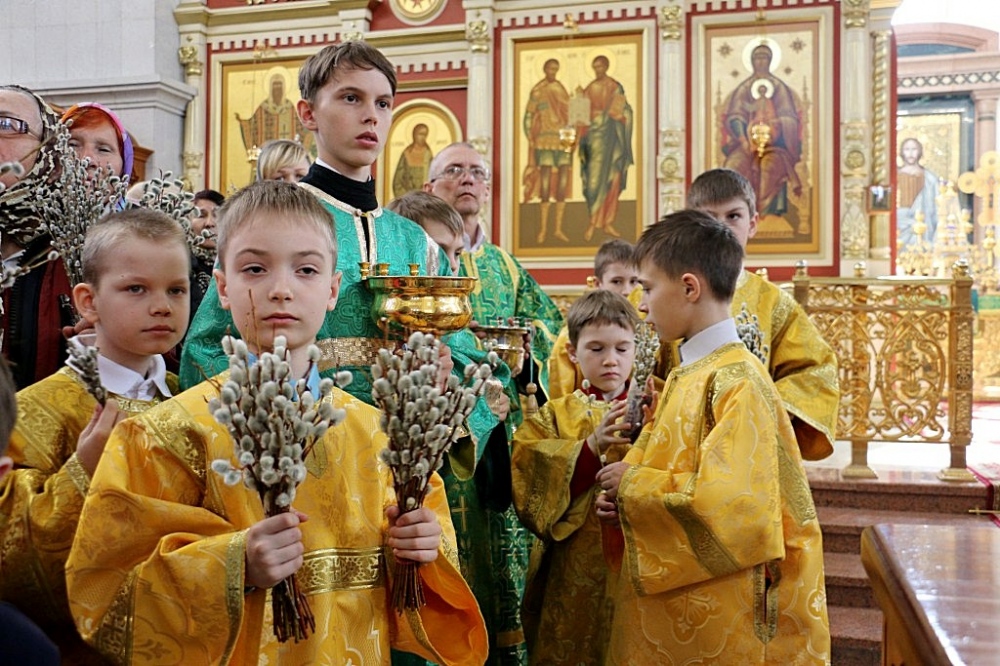 Божественная литургия в праздник Входа Господня в Иерусалим в Спасо-Преображенском кафедральном соборе 09 апреля 2017 г.