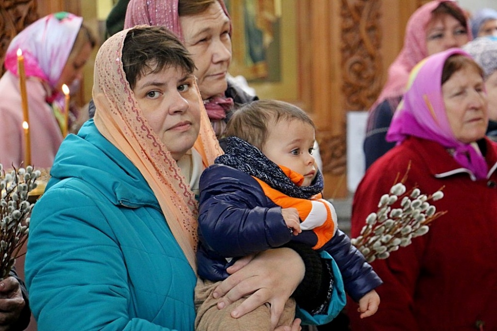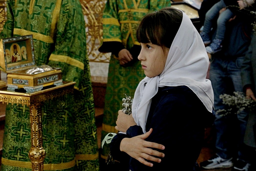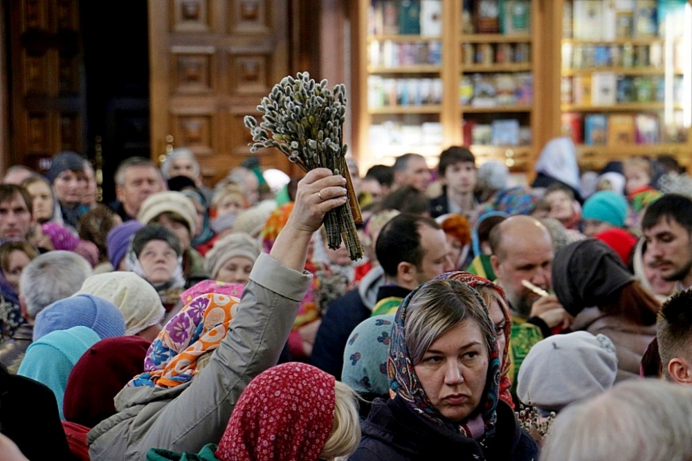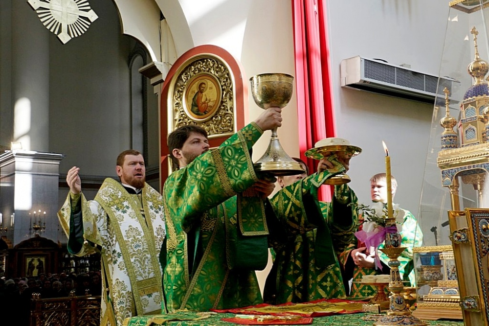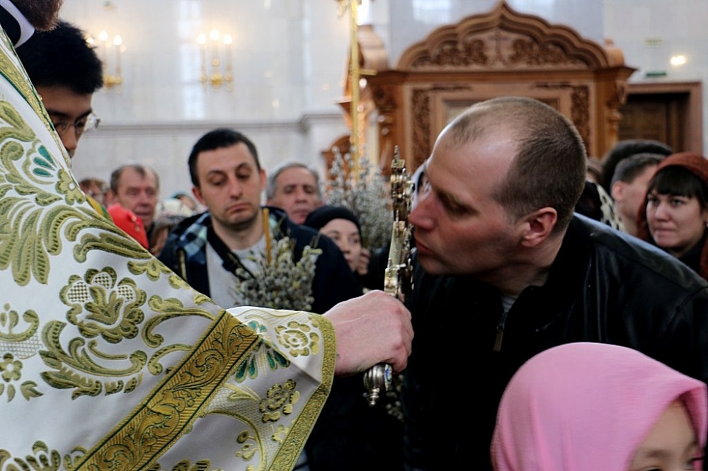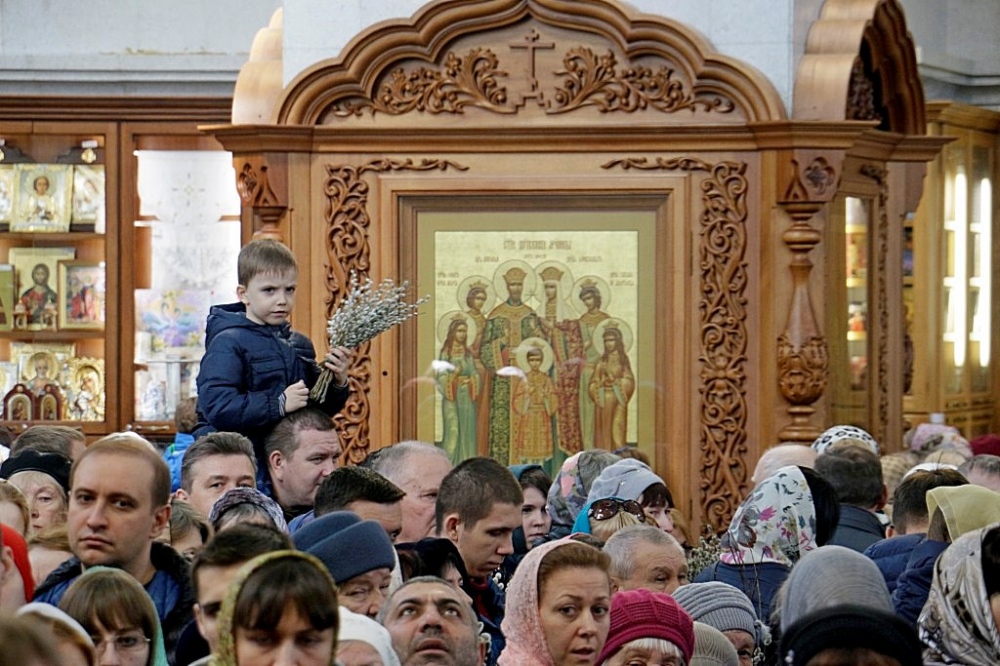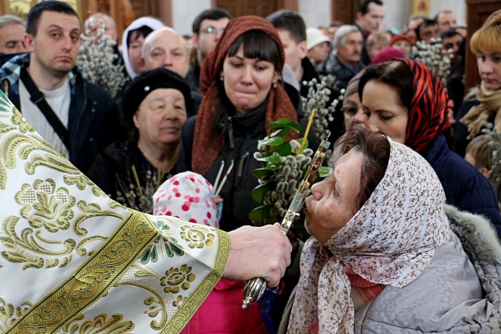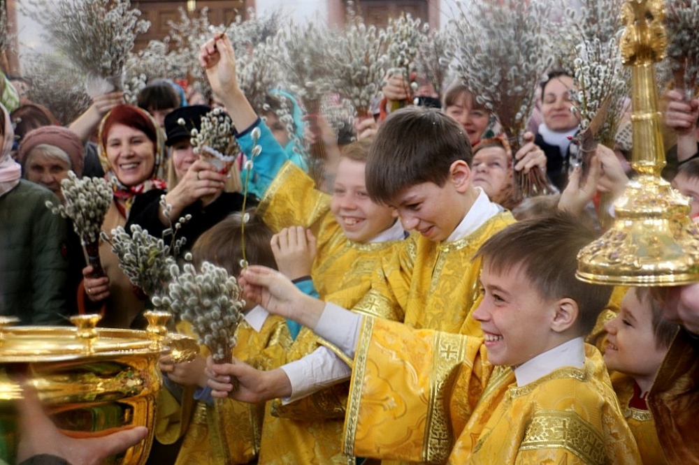 Божественная литургия в праздник Входа Господня в Иерусалим в Спасо-Преображенском кафедральном соборе 09 апреля 2017 г.